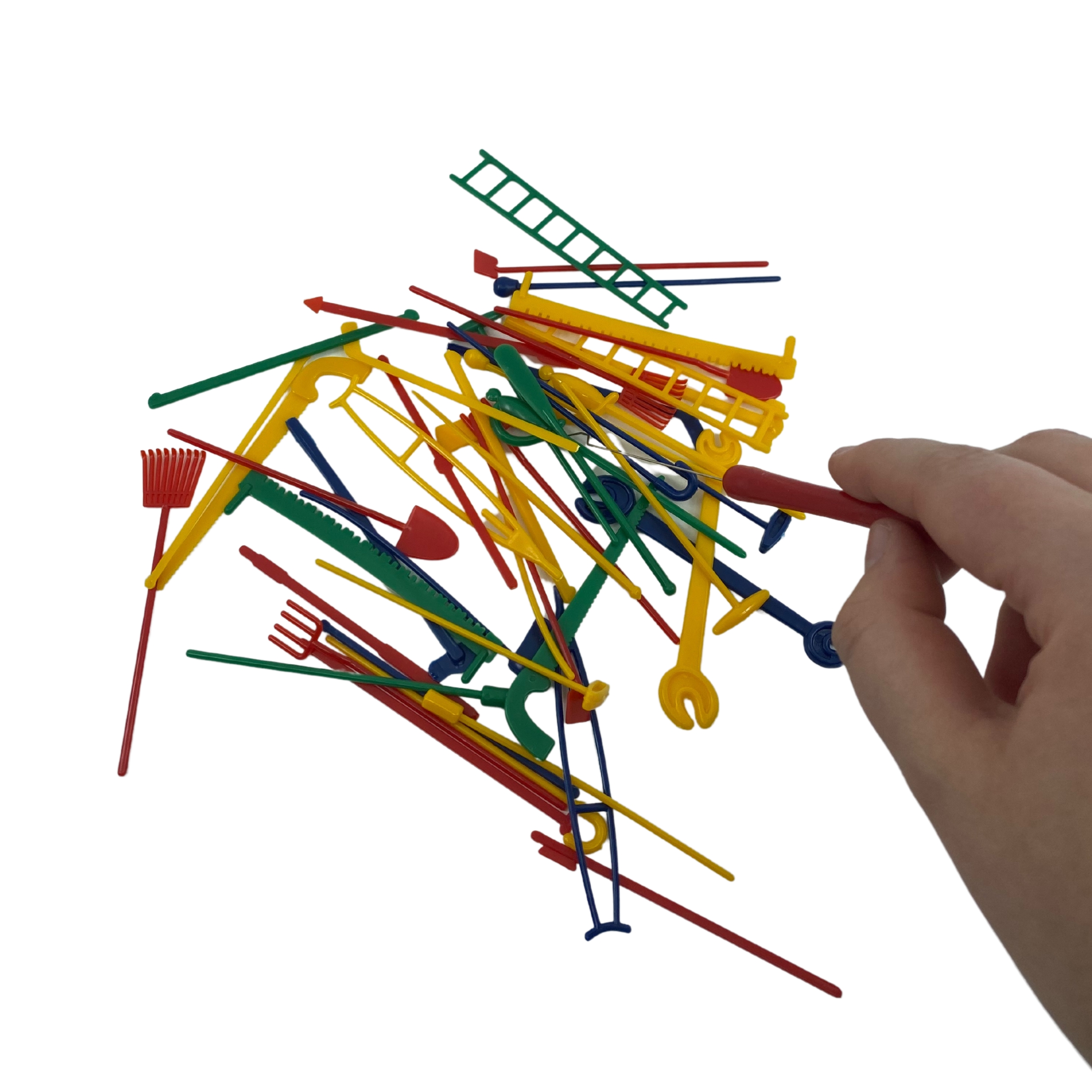 A great old English game of skill and dexterity. Originally played using lengths of cut straw, the aim of the game is to remove the playing pieces one at a time with the special extraction toll without disturbing any other pieces! Our pack includes dozens of tiny, intricate and colourful playing pieces and full instructions.